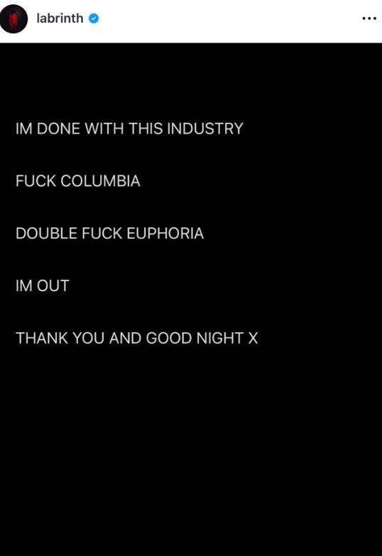 Factually, Labrinth called out EUPHORIA, not Sam, but I’m sure if you ask the auteur, same thing. Labrinth followed up his loud exit with more condemnation of the music industry’s turning artists into thieves of the night, which could allegedly imply he felt replaced by another musician for the upcoming season. I find it hard to believe anyone can make Levinson’s hormonal trauma dump have meaning like Labrinth’s beats.